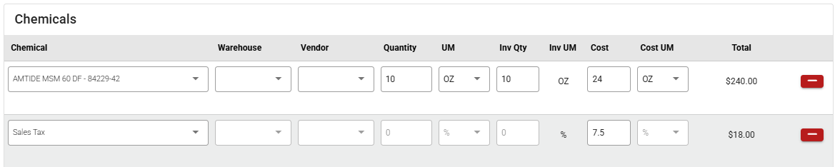 We've given the Chemical Sales screen a new look, and included the ability to apply a percentage based Sales tax!